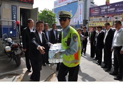 到达活动地点后,首先由集团董事长韩峰同志作讲话,随后交警支队东城