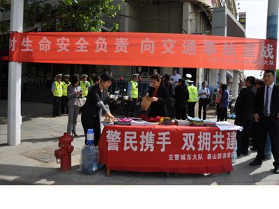 表彰人员一起将各子公司宣传材料及交通安全材料分发给过路行人,在宣传交通安